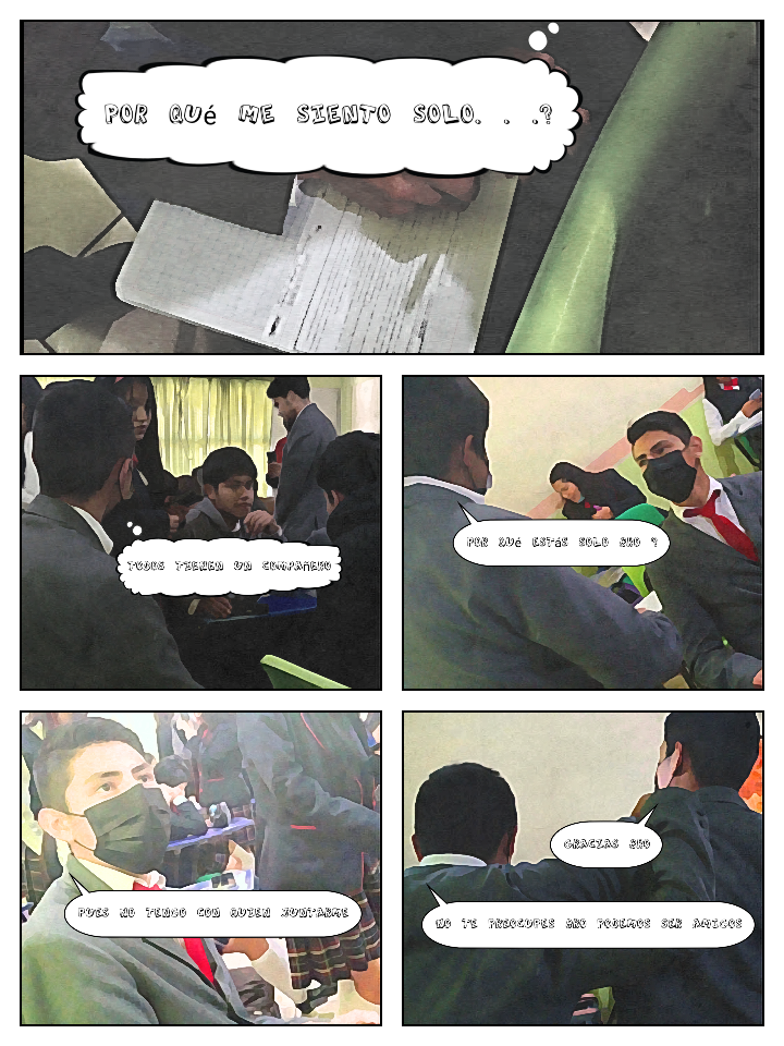 “Un día en mis zapatos” es una historieta que narra la historia de Alex, un estudiante que suele juzgar a las personas que lo rodean sin conocer lo que realmente viven. A través de una experiencia inesperada, Alex tiene la oportunidad de ver la vida desde la perspectiva de sus compañeros y comprender las dificultades que enfrentan. Esta experiencia le permite reflexionar sobre sus acciones y aprender el valor de la empatía. La historia muestra cómo pequeños gestos de comprensión y apoyo pueden cambiar la forma en que nos relacionamos con los demás.